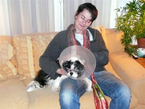 Britta is herstellende van de operatie waarbij beide ogen zijn verwijderd. Dat gaat niet helemaal van een leien dakje; op enkele voorspoedige dagen volgde een doorwaakte nacht omdat ze zo ziek – als een hond! – was, en hoewel de linkerkant goed geneest heeft de rechteroogkas de hinderlijke neiging nogal snel te gaan bloeden. Het helpt niet dat Britta graag met haar snuitje tegen tafelpoten schuurt. Of tegen muren, kasten, stoelpoten opbotst. De kraag vangt de schok maar ten dele op.