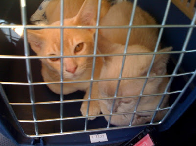 Na een uur in de auto heb ik de Veluwe maar afgebeld en ben huiswaarts gekeerd. C&C hebben dan anderhalf uur in de kattenkrat gezeten – samen, dus op zich gezellig – en ik heb ze van minuut tot minuut op de hoogte gehouden van de toestand op de weg. Ze waren al snel vrij kalm, maar erg leuk vonden ze het nou ook weer niet.