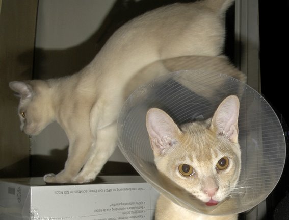 Omdat hij met zijn tong alleen bij zijn staart kan, wordt hij er niet schoner van.  Maar de binnenkant van zijn kapje is smetteloos.