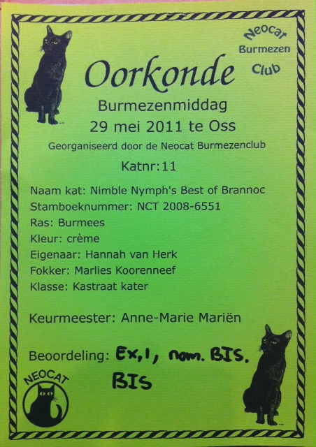 Het was een lange dag. Chucky werd vanmiddag uitgeroepen tot de mooiste castraatkater van de Burmezenmiddag 2011.