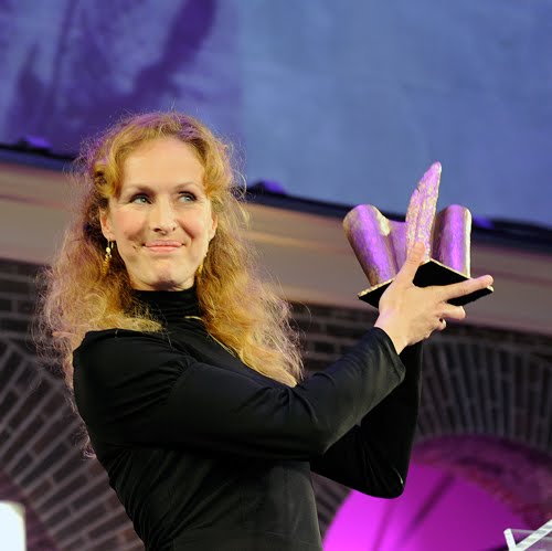 De Moor ontving de prijs uit handen van juryvoorzitter Ernst Hirsch Ballin. Dat Marente zelf ook schermster is, kan ik begrijpen. Als je zó dun bent kan je tegenstander je onmogelijk raken. Of misschien kleden zwarte jurkjes inderdaad. wel. heel. slank. af.