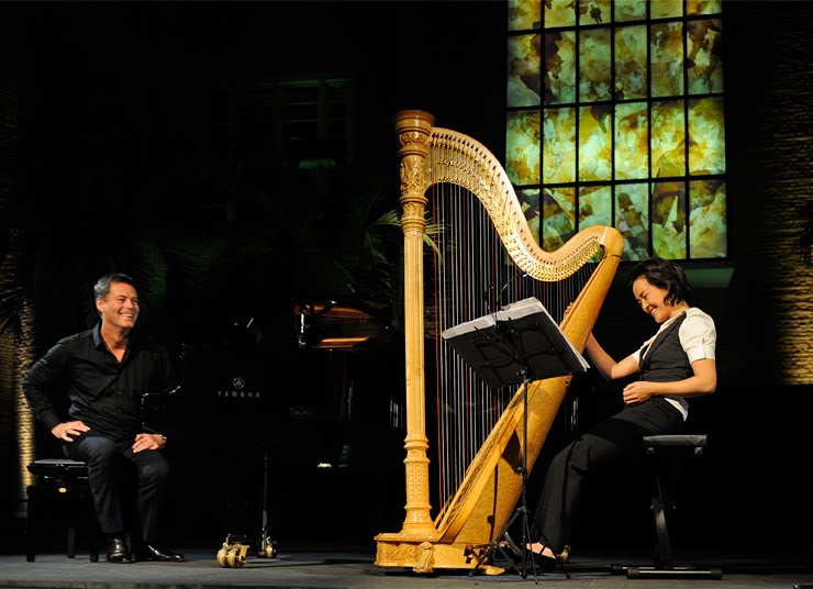 Ik moest kiezen – vond ik – tussen een foto waarin Lavinia uiterst geconcentreerd, gepassioneerd en fotogeniek versmelt met haar hemelse harp, en een foto van het moment waarop Lavinia en Feico net klaar zijn en de ontspanning en het plezier van wat er zojuist is gedaan van hen afstraalt. Het werd de ontspanning.