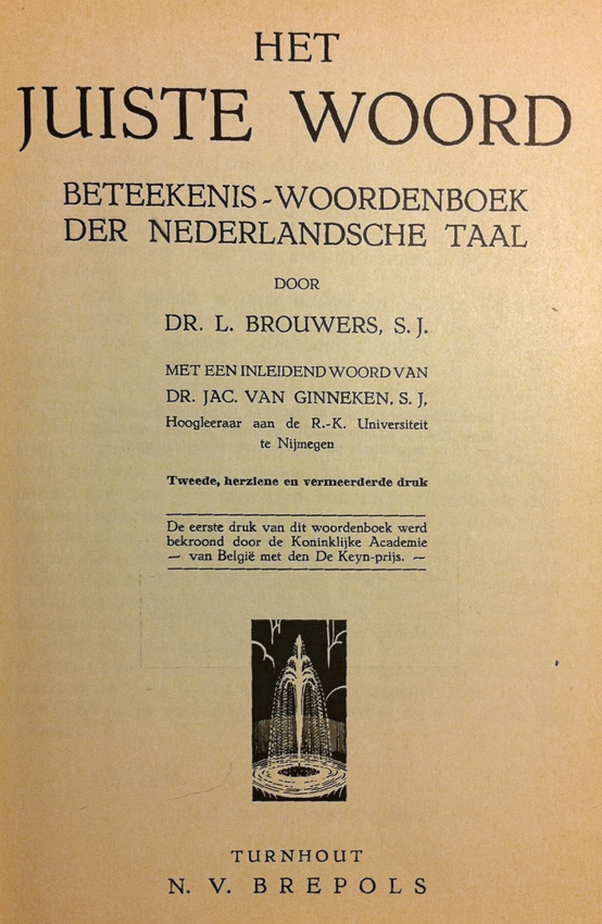HJW is een bijzonder woordenboek. Het geeft woorden per onderwerp – heel fijn voor wie synoniemen zoekt, alternatieven, tegenstellingen. Onmisbaar voor vertalers en fanatieke kruiswoordpuzzeloplossers. Probleem met HJW: het is verouderd. De laatste herziene druk is uit 1988. De eerste druk zag het licht in 1931 en werd gemaakt door de Vlaamse priester en Jezuit Lodewijk Brouwers. en later voortgezet door pater F. Claes (de religieuze achtergrond van de auteurs verklaart waarom er relatief weinig schuttingwoorden in voorkomen, maar wel heel veel kerkse termen).