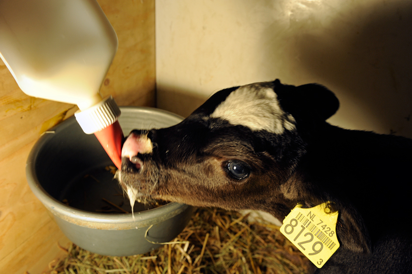 Als het flesje leeg is – hij drinkt een liter in drie minuten op – stuitert hij nog even door het hok op zoek naar meer speen. En hij tilt zijn staartje op en poept. En daarna kalmeert hij en gaat weer slapen. Zijn leven is erg overzichtelijk.