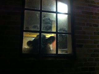 Wij gingen uit eten in Sneek om ons driejarig bestaan te vieren. Zien wij Willy Drie door het stalraampje naar buiten kijken, wat wij van plan zijn …