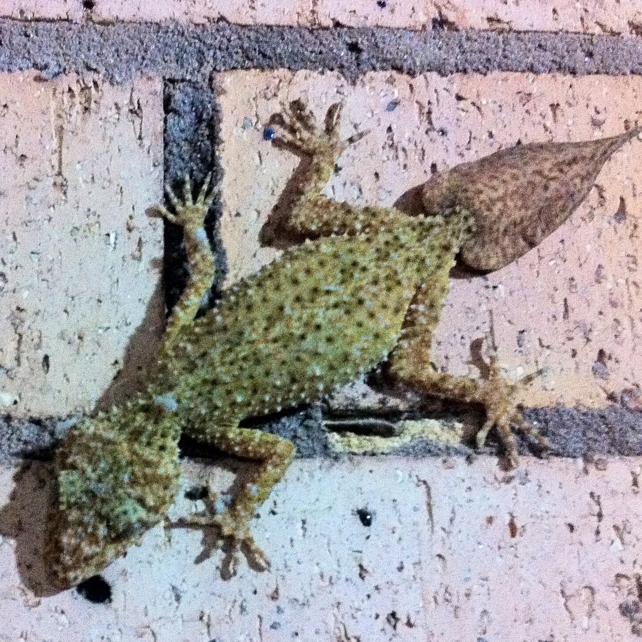 En ’s avonds bij het tandenpoetsen kleefde hij opeens als een vlieg tegen de muur, of als een kunstgebit tegen een gehemelte of als Geert Wilders aan opspraak: de badkamergekko!