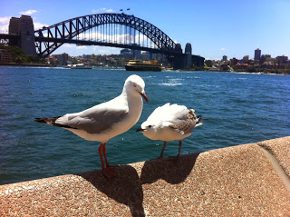 Vis! Vis! VIS! Ik wil visje! Kindje meeuw eist bij ouder meeuw wat het altijd heeft gekregen. En ik krijg wat ik wil: de  perfecte voorgrond bij Harbour Bridge.