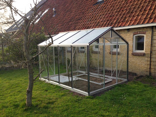 Het dakraam moet nog en de deur is geassembleerd en kan nu worden ingehangen. De hoekijzers moeten nog verankerd – dus vier gaten graven en beton storten. En dan: tomaten zaaien!