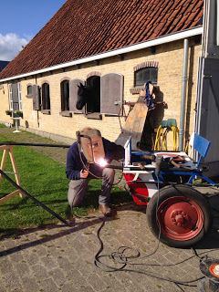 Epi bouwt de koeienkar om, zodat Willy Drie weer ingespannen kan worden. Voor meer foto’s, zie Willy Drie’s blog.