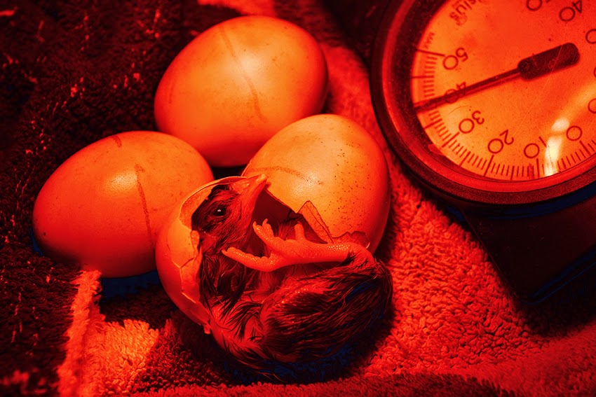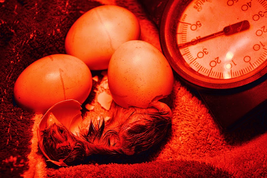 Het kuikentje is uitgeput. Je ziet ‘m hijgen.