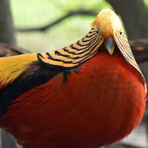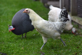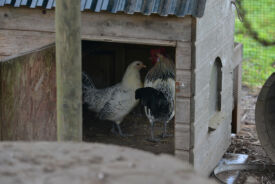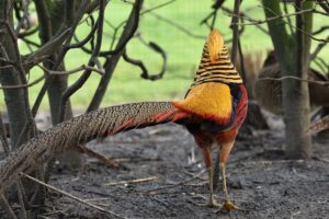 Voor zijn grote vriendin Tineke is het leven wat lastiger. Ze is een heel klein beetje minder bang, en al staat ze laag in de pikorde, ze loopt soms wel mee in een groepje.  Als het haar te druk wordt, zoekt ze dekking in het goudfazantenhotel. (‘Hotel’ omdat de deur altijd open staat.) Hier is er beschut en rustig. Als je geen goudfazant bent.
