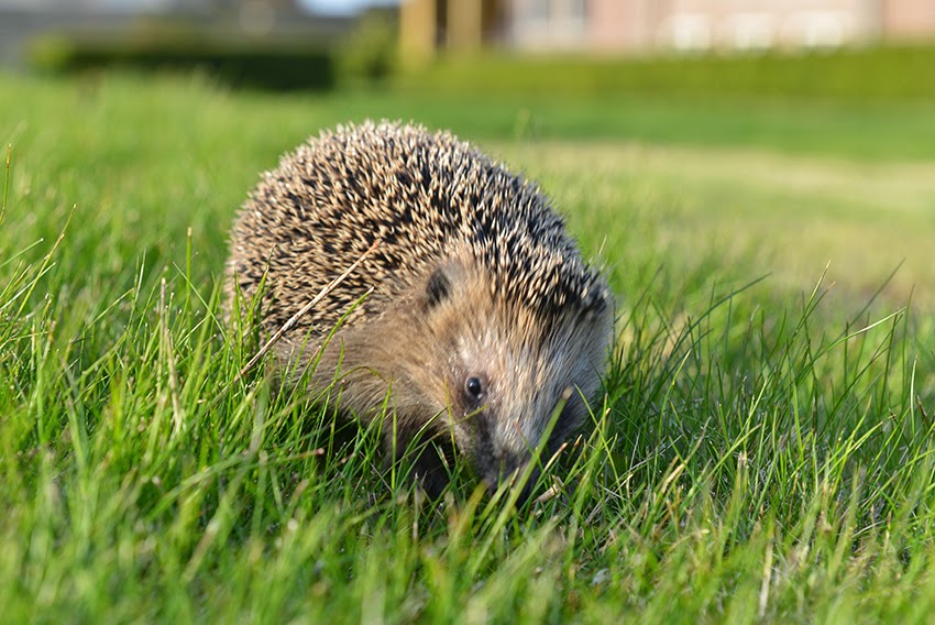 Of misschien is wel wel een Everdien. Deze jonge egel scharrelde gisteravond in de tuin. Vanochtend wandelde hij onder de heg. Evert is ongeveer zo groot als mijn hand en je kunt heel dichtbij komen voordat hij zich oprolt zoals egels betaamt. We hopen dat hij zich in de tuin vestigt.