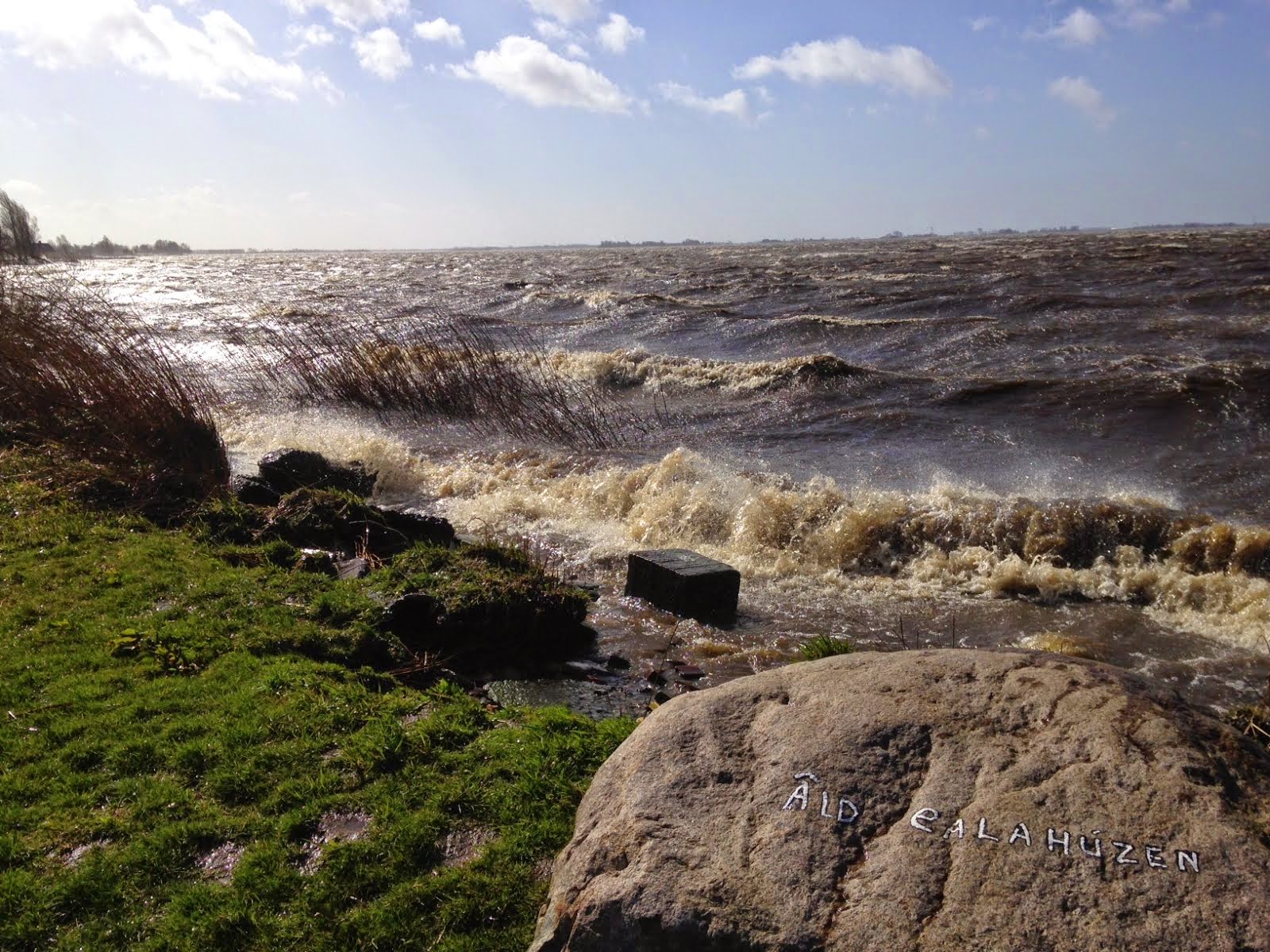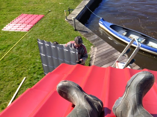 Als de wind is gaan liggen, zullen we platen op het dak schroeven om de schuur verder te stabiliseren. Maar voorlopig staat-ie weer pal. Kop in de wind te schudden.