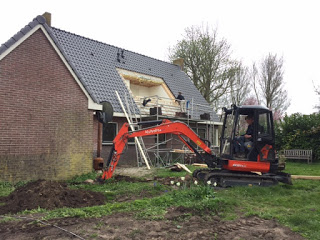 Vandaag was er veel volk over de vloer. De kraandrijver bleef buiten en de stallenbouwer werkte in de schuur maar de schilders en de timmermannen hebben bezit genomen van het huis of ze er nooit meer zullen weggaan. En toch moeten ze eind deze week klaar zijn want dan komen de mannen die de vloer boven gaat egaliseren, voor de vloerbedekking.