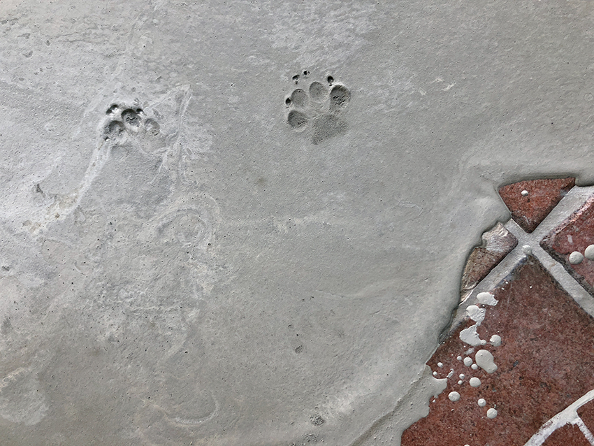 De keuken krijgt nieuwe tegels. Daarvoor moeten eerst de gaten weggewerkt met cement en egaline. Een uitgelezen kans voor Chucky om zijn stempel te drukken in wat nu Chucky’s Walk of Fame is.