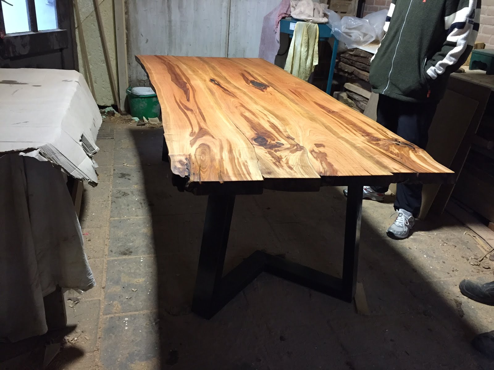 Met tientallen lange schroeven worden de balken vastgezet.