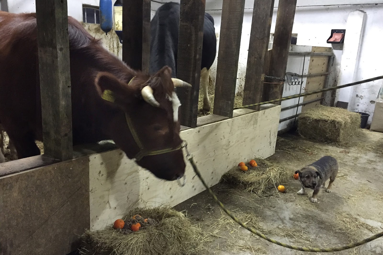 Voila! Twee tevreden ossen. Het eet ook een stuk rustiger – je moet echt met je hoorns tussen de balken door manoevreren. Dat maakt Gerrit iets minder geneigd om Willy Drie steeds weg te jagen omdat hij altijd denkt dat het hooi elders lekkerder is. Het koeienrestaurant is geopend.