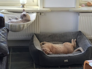De taart werd gegeven toen het nog een stuk kouder was, voor de tuinvogels en niet de kippen. Maar nu is het zo warm dat de tuinvogels het niet echt nodig hebben. En we hebben twee katten die graag een merel of koolmees verschalken. Nu genieten de kippen ervan.