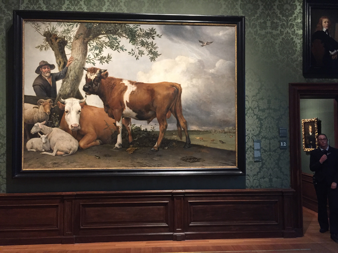 In het Mauritshuis hangt de Stier van Paulus Potter, compleet met vliegen geportretteerd in een idyllisch landschap. Hij is levensgroot, maar toch een beetje een raar ding. Vlezige voor- en dunne achterpoten. Een beetje uit balans zoals pubers met plaatselijke groeispurts uit balans kunnen raken wua lichaamsonderdelen. Een rund van een jaar heet een pink. En deze stier is nog jong en onvolgroeid. Een beetje een iel pinkeding. Ziedaar dus een van de hoogtepunten uit de collectie van het Mauritshuis: Paulus Potters Iel Pinkeding. En als zodanig een beauty.