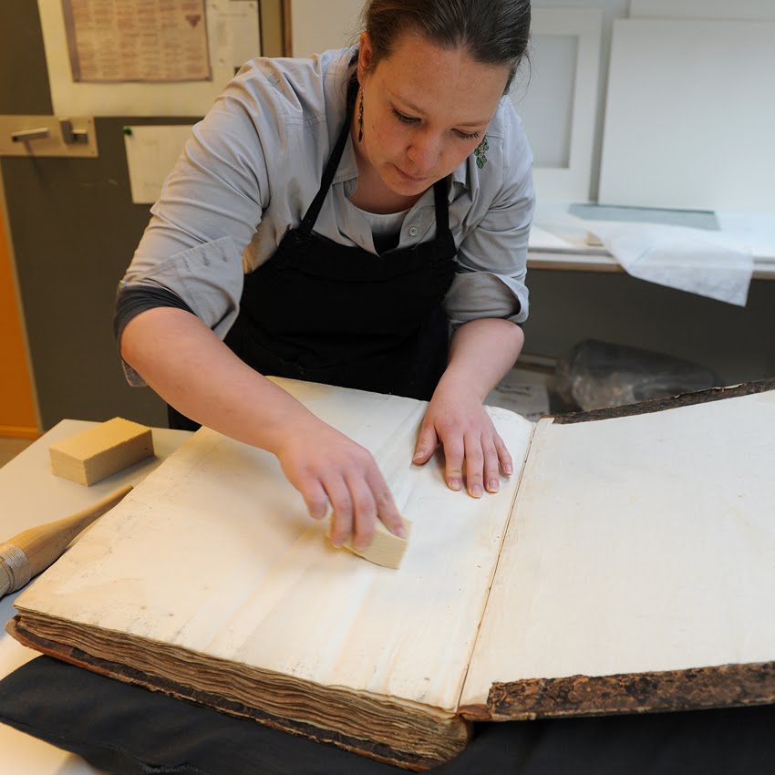 Om de potloodaantekeningen van eerdere bibliothecarissen wordt zorgvuldig heengepoetst.