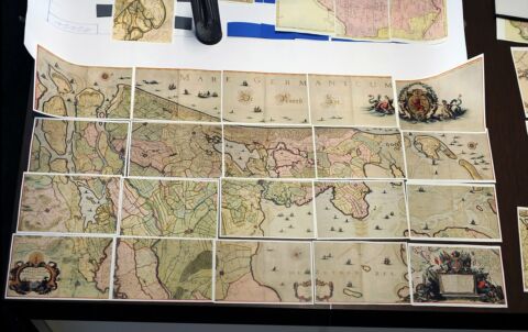 Dit is een deel van de Atlas der Neederlanden (‘AdN’) een van de topstukken van de Bijzondere Collecties van de Universiteit van Amsterdam. De AdN is een zg. factice atlas: de kaartencollectie van een (vooralsnog onbekende) verzamelaar, ingebonden in negen banden.