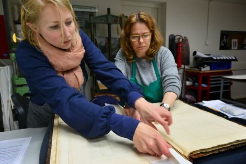 De externe second opinion heeft zijn zegen gegeven en een belangrijk moment is aangebroken: De eerste echte conserverende behandeling voor de Atlas der Neederlanden begint met een grondige droge poets. En ik mag erbij zijn.