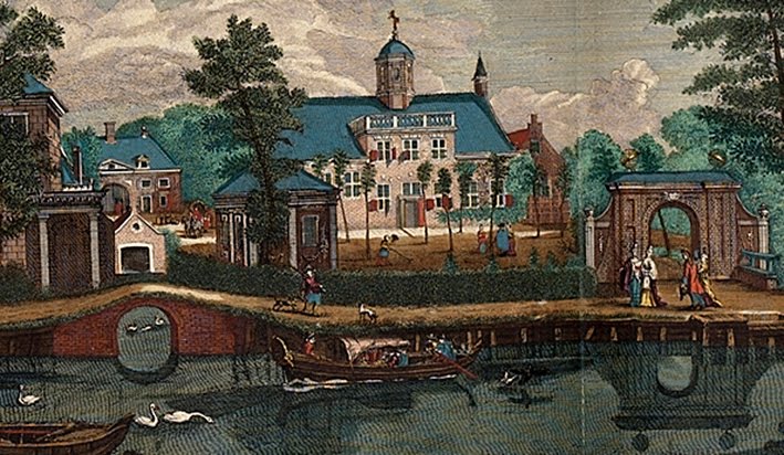 Werner vervolgt: “De spectaculaire plaat van zijn eigen huis neemt vrijwel het gehele eerste blad van de kaart in beslag en laat weinig twijfel bestaan over wie hier een stempel op de omgeving drukte. De ets door Philibert Bouttats (geb. ca. 1654) is vervaardigd naar een schilderij van Jan van der Heyden (1637-1712), dat tegenwoordig te vinden is in Apsley House, Wellington Museum, Londen.”